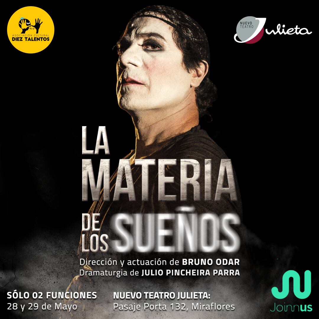 La obra, dirigida por el mismo Bruno Odar, se presentará el 28 y 29 de mayo en el Nuevo Teatro Julieta. Las entradas pueden conseguirlas en Joinnus.