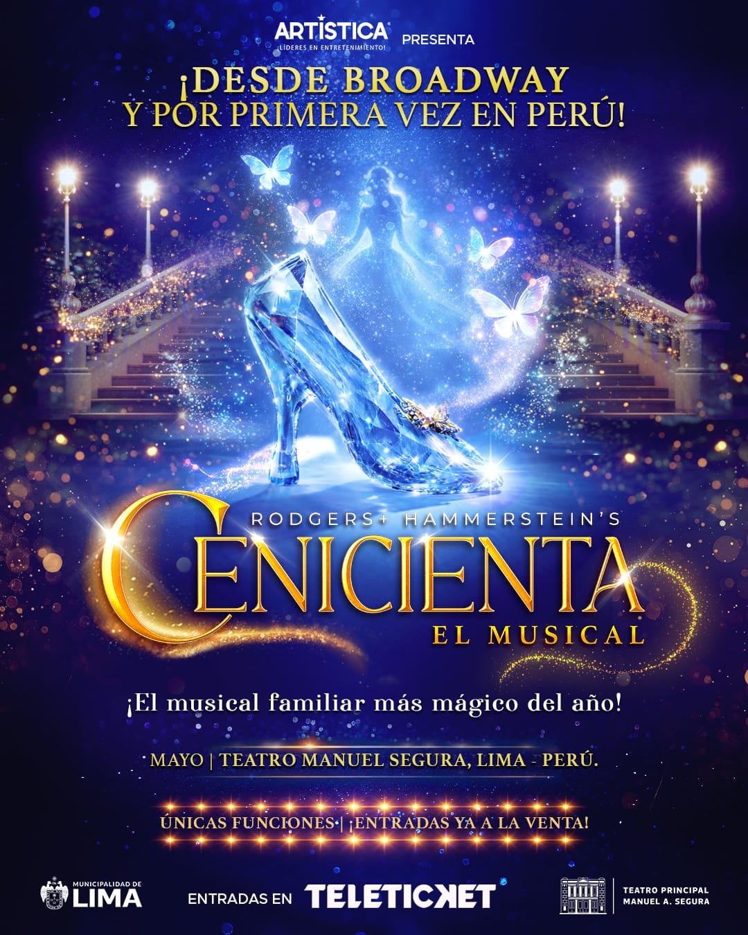 El clásico cuento de hadas llega por primera vez a los escenarios peruanos con “Cenicienta, El Musical”, una producción de gran formato que se presentará desde el 2 hasta el 24 de mayo en el histórico Teatro Manuel Segura, en el centro de Lima.