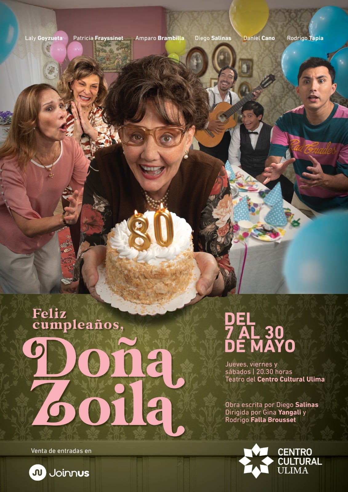 “Feliz cumpleaños, doña Zoila” tendrá funciones de jueves a sábado, a las 8:30 p.m., en el Teatro del Centro Cultural de la Universidad de Lima.