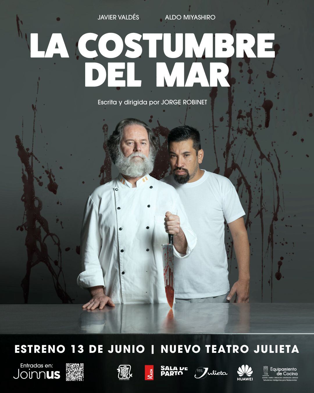 Después de una temporada en México llega por primera vez a Lima, La costumbre del mar, obra de teatro escrita y dirigida por Jorge Robinet, con las actuaciones especiales de Aldo Miyashiro y Javier Valdés. La Costumbre del Mar se estrena por una breve temporada el jueves 13 de Junio en el Nuevo Teatro Julieta.