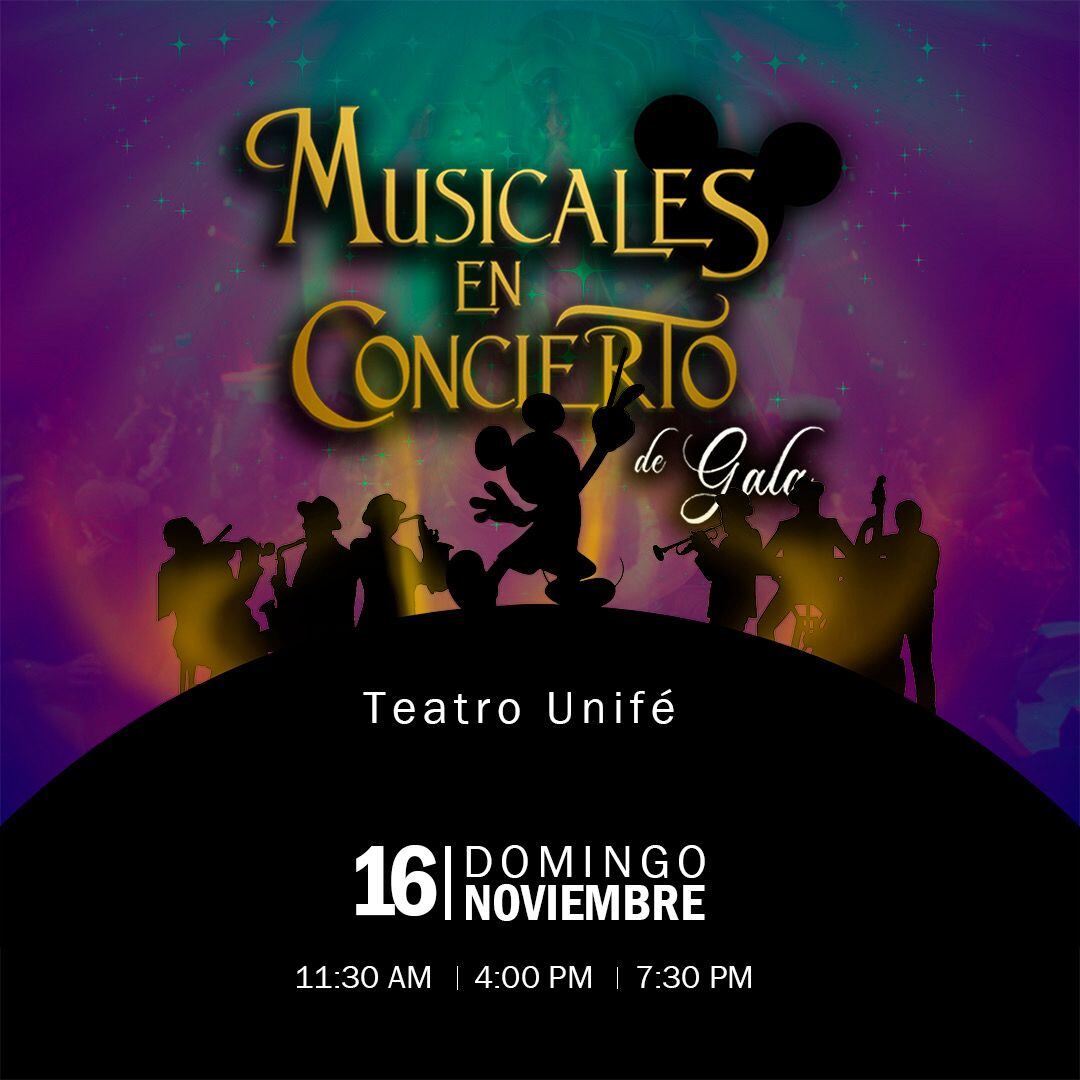 🎭 Musicales en Concierto: domingo 16 de noviembre – 11:30 a.m., 4:00 p.m. y 7:30 p.m.