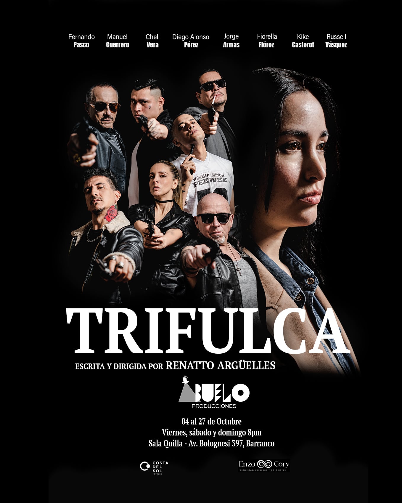 Esta obra escrita y dirigida por Renatto Argüelles, y producida por Pilar Mejía de Abuelo Producciones, teniendo un elenco conformado por Cheli Vera, Diego Alonso Pérez, Fernando Pasco, Fiorella Flórez, Jorge Armas, Kike Casterot, Manuel Guerrero y Russell Vásquez.