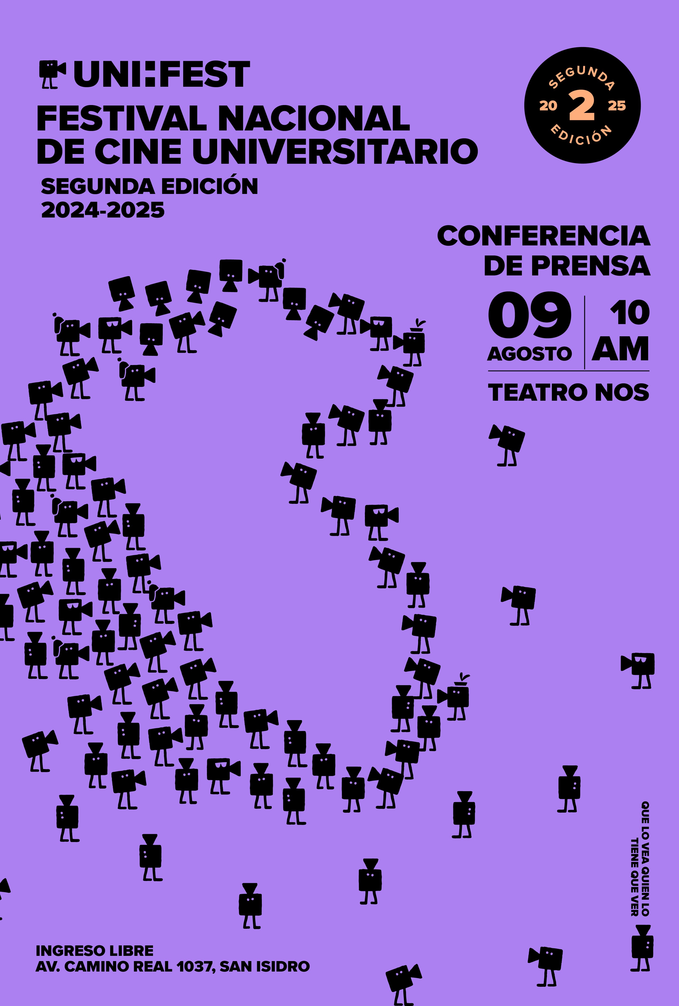 Este viernes 9 de agosto, iniciará la segunda edición del UNIFEST 2025, con una conferencia de prensa donde se dará a conocer a las instituciones participantes de 15 regiones del país, al nuevo jurado y las novedades del festival. Además, luego de la conferencia se proyectarán los 3 cortometrajes ganadores de la primera edición: Tupananchiskama (UNSCH-Ayacucho), La madriguera del conejo (UCAL-Lima) y Entre sombras de piedra (UNAMBA-Abancay).