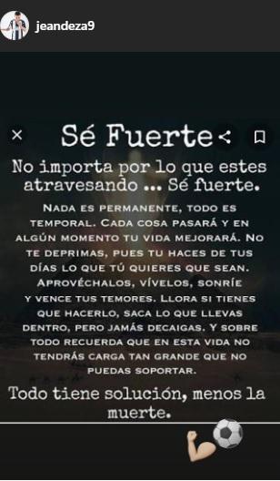 “Sé fuerte. No importa por lo que estés atravesando, sé fuerte. Nada es permanente, todo es temporal. Cada cosa pasará y en algún momento tu vida mejorará. No te deprimas, pues tú haces de tus días lo que tú quieres que sean. Aprovéchalo, vívelos, sonríe y vence tus temores”, escribió el delantero en su cuenta de Instagram.