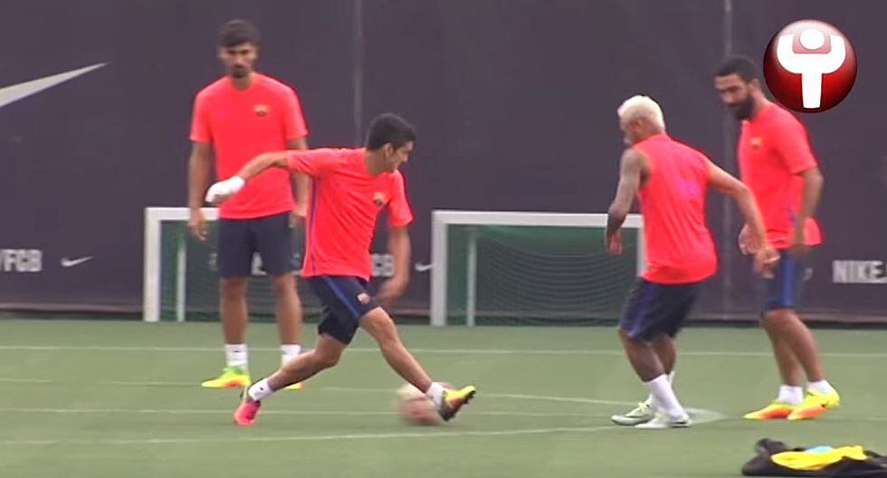 Neymar, estrella brasileña del FC Barcelona, volvió hacer de la suyas con una sensacional 'huacha' en el entrenamiento del club español; además bromeó a su compañero Luis Suárez.
