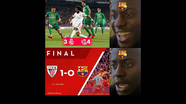 Los memes invadieron las redes sociales para generar las incesantes burlas sobre Barcelona, que cayó en los cuartos de final ante Athletic de Bilbao por 1 a 0 y quedó eliminada de la Copa del Rey.