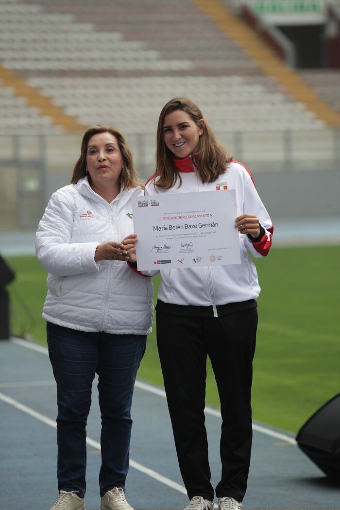 La presidenta de la república, Dina Boluarte, encabezó el acto de reconocimiento, junto al ministro de Educación, Morgan Quero; el titular del Instituto Peruano del Deporte, Federico Tong; y el titular del Comité Olímpico Peruano, Renzo Manyari.