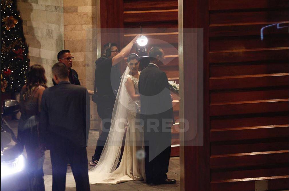 La joven médico llegó con un hermoso vestido acompañada de su padre. En el altar la espera ‘Orejita’ Flores muy nervioso tras cinco años de relación.