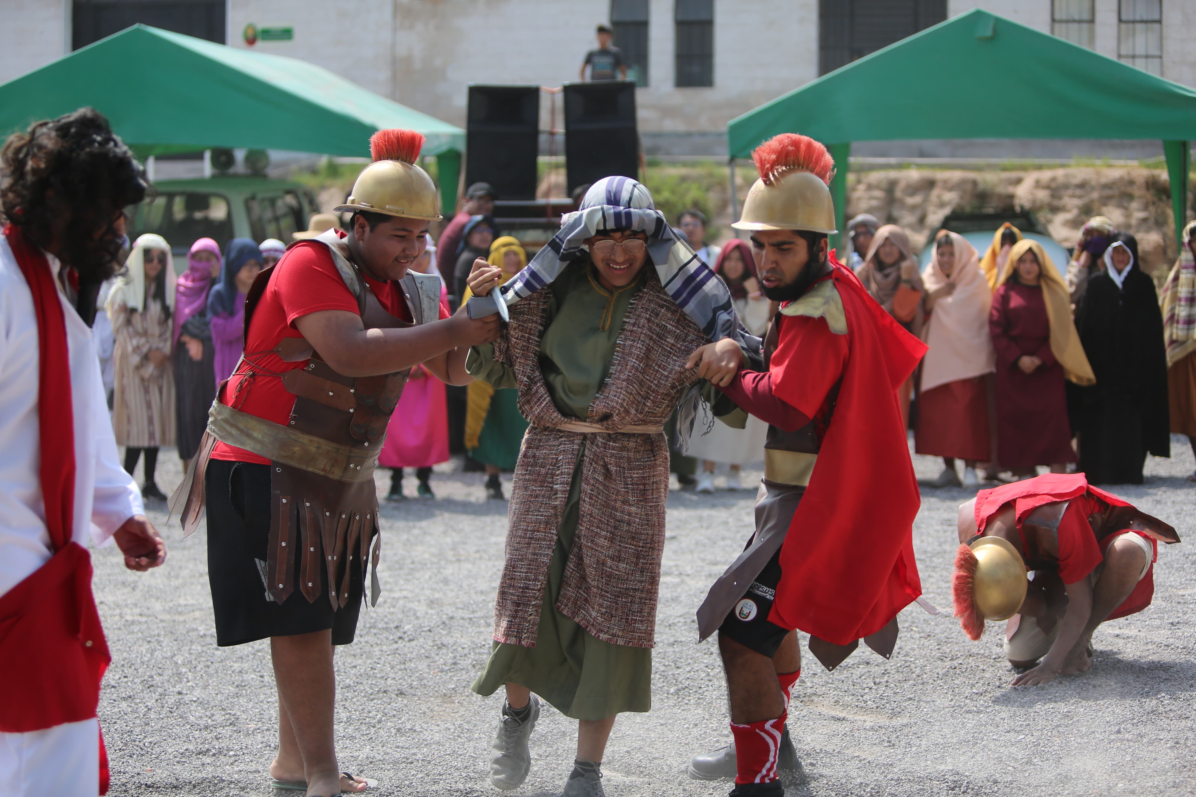 La actividad empezó en la parroquia con la representación de Jesús en el Jardín de Getsemaní, que después es arrestado y llevado a condena.