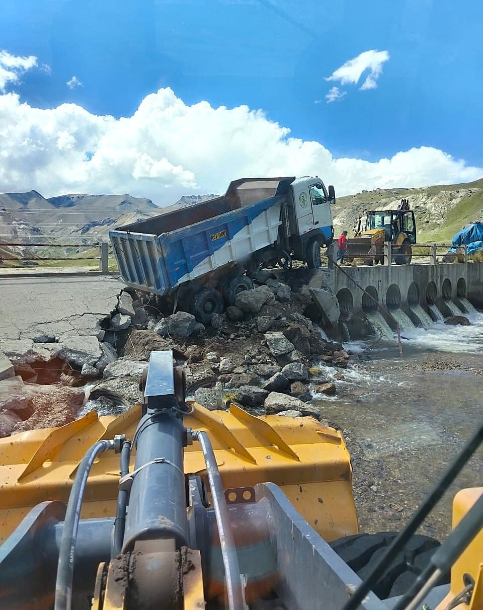 La Municipalidad Provincial de La Unión aportó con un cargador frontal, y la Municipalidad Distrital de Puyca facilitó una retroexcavadora, en un esfuerzo conjunto para retirar la unidad y evaluar la situación del puente.