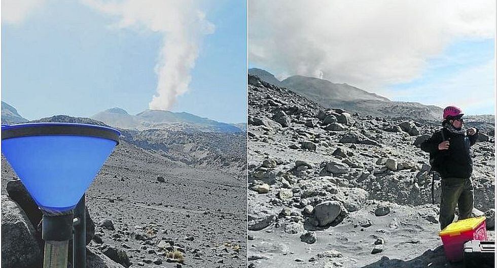Este equipo multidisciplinario también toma muestras de cenizas. Actualmente tienen instalados 35 cenizómetros, distribuidos muy cerca al volcán y en distritos aledaños.