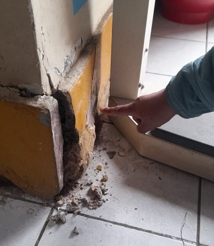 Según detallaron, a consecuencia del movimiento sísmico, se han ocasionado grietas en la construcción y un derrumbe en Huamanguilla.