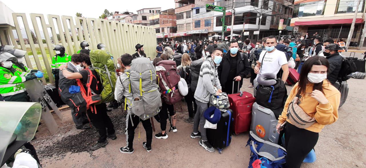 En los exteriores del aeropuerto cusqueño hay cientos de ciudadanos israelíes, norteamericanos y europeos a la espera de abordar las aeronaves.
