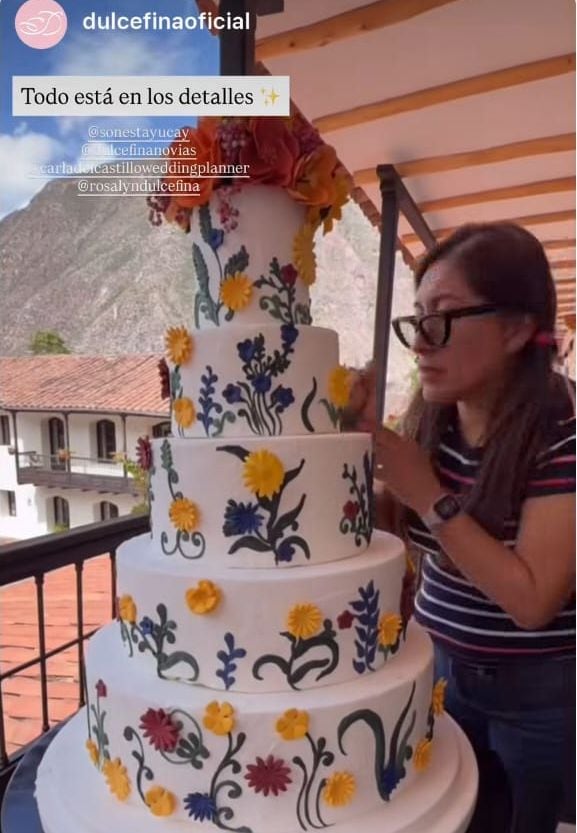 Finalmente en la cuenta: Carla del Castillo Wedding Planner, se compartieron detalles del lugar, un hotel con bastantes áreas verdes, un escenario al aire libre, una torta de cinco pisos con temática andina, y otras postales más acerca de la ceremonia.
