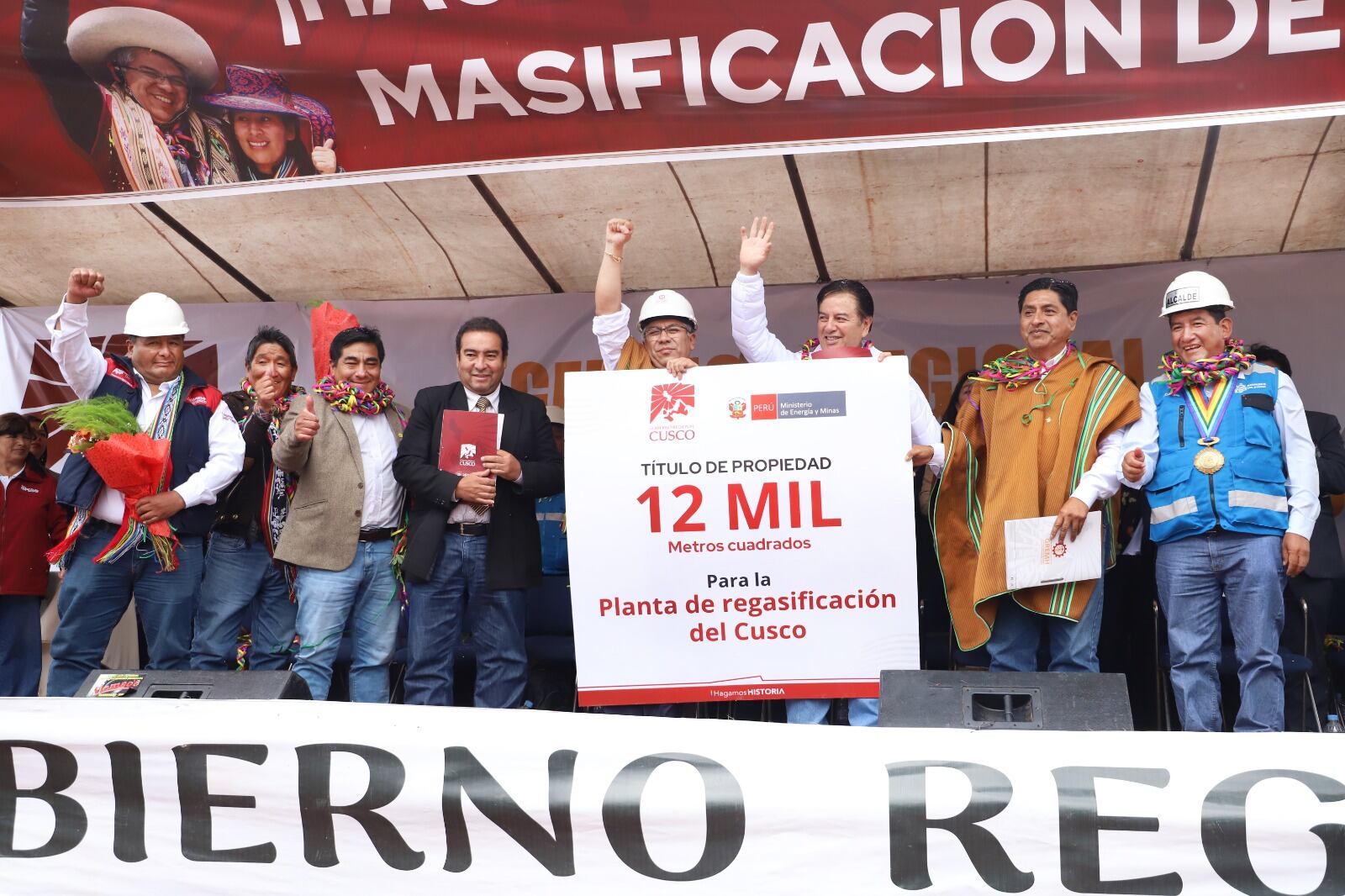 En Huayllapampa, distrito de San Jerónimo, el Gobierno Regional Cusco entregó oficialmente el terreno de más de 12 mil metros cuadrados al Ministerio de Energía y Minas para la próxima construcción de la Planta Satélite de Regasificación para llevar gas natural a través de conexiones domiciliarias.