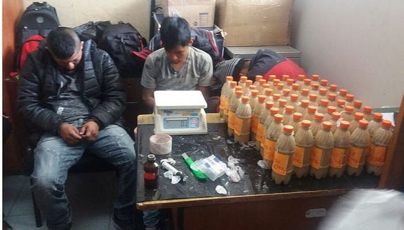 Agentes del Departamento Antidrogas de Abancay, decomisaron más de 35 kilos de alcaloide de cocaína colocados en botellas de plástico en el interior del tanque de combustible de un moderno vehículo.