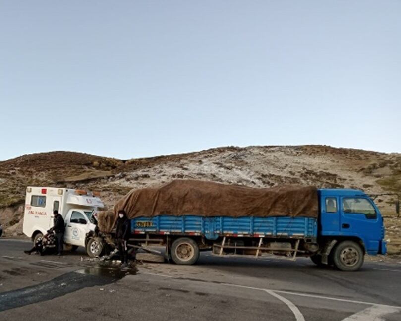 Una ambulancia perteneciente a la Red de Salud Huancavelica sufrió un choque en la carretera que va de Huancavelica hacia Lircay.