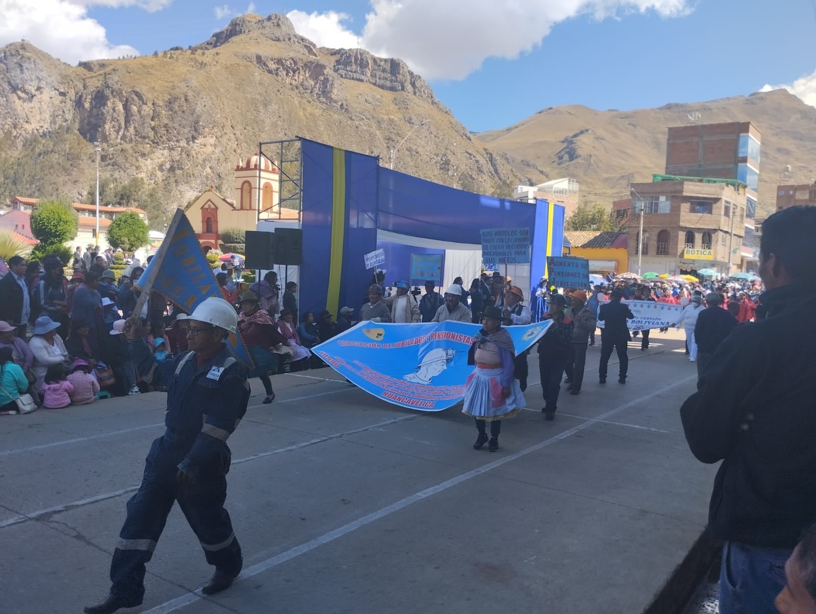 El desfile se realizó en el jr. Ernesto Morales, a donde llegaron instituciones educativas de inicial, primaria y secundaria del distrito, además de institutos superiores, delegaciones de comunidades campesinas, asociaciones, entre otros.