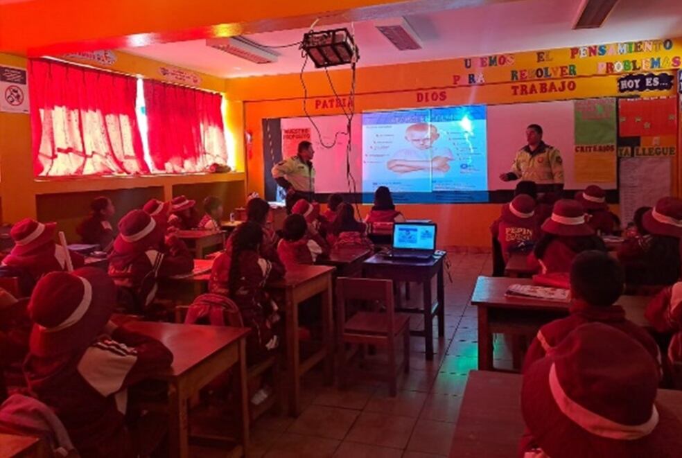 Efectivos de la Policía Nacional del Perú realizaron dos capacitaciones en el departamento de Huancavelica, ambos con la misma temática, la lucha contra el acoso escolar y la violencia, bullying.