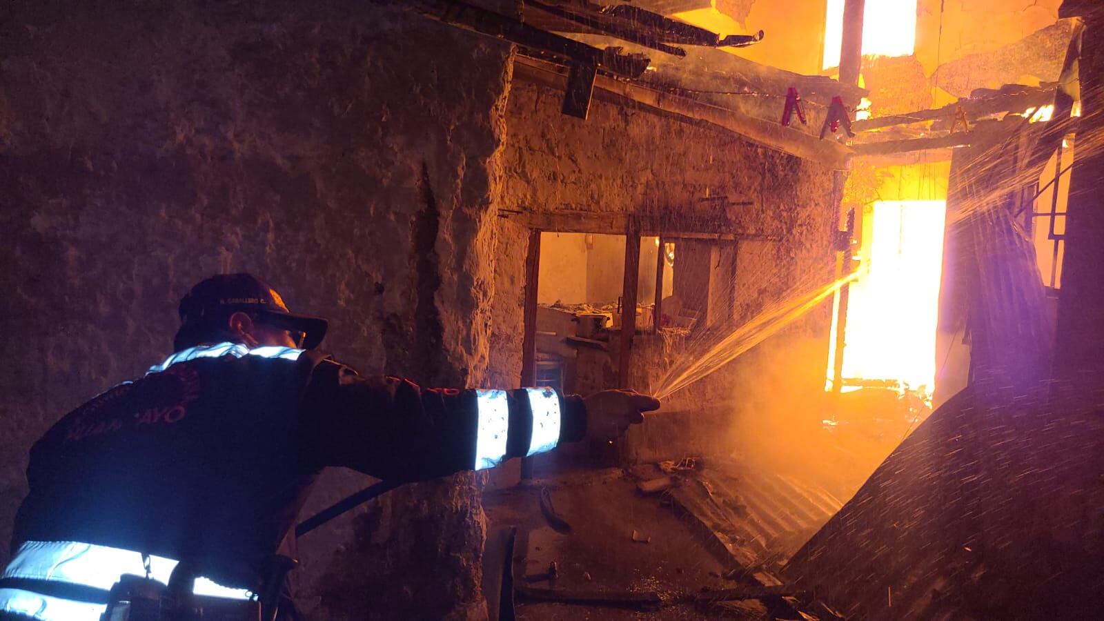 Ocurrió cerca de la medianoche de ayer, en la cuadra 3 del jirón Santa Isabel, en Huancayo. El damnificado se identificó como Orlando Obregón Marmolejo (56), quien señaló que la noche del último domingo prendió dos velas a un pequeño altar que hizo con una fotografía de su madre y, salió del predio para cenar en la calle. sin embargo a su retorno encontró toda la casa que era devorada por las llamas.