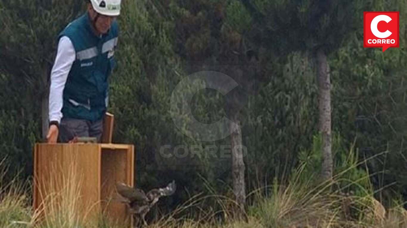 El aguilucho fue encontrado malherido con una fractura en el pico de flauta, tras una intervención quirúrgica y cuidados especiales por parte del Servicio Nacional Forestal y de Fauna Silvestre (Serfor), fue liberado y regresó a la naturaleza en el Bosque de los Pinos en la región Junín.