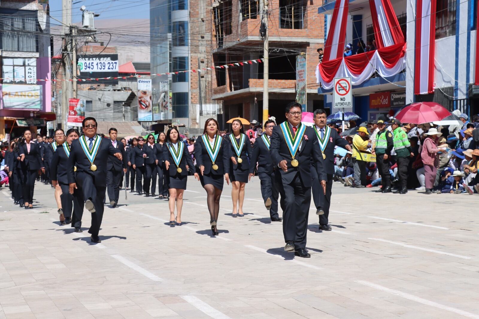 La plaza Independencia de la provincia de Chupaca ayer se vistió de rojo y blanco. El desfile tuvo la participación de más de 100 delegaciones.