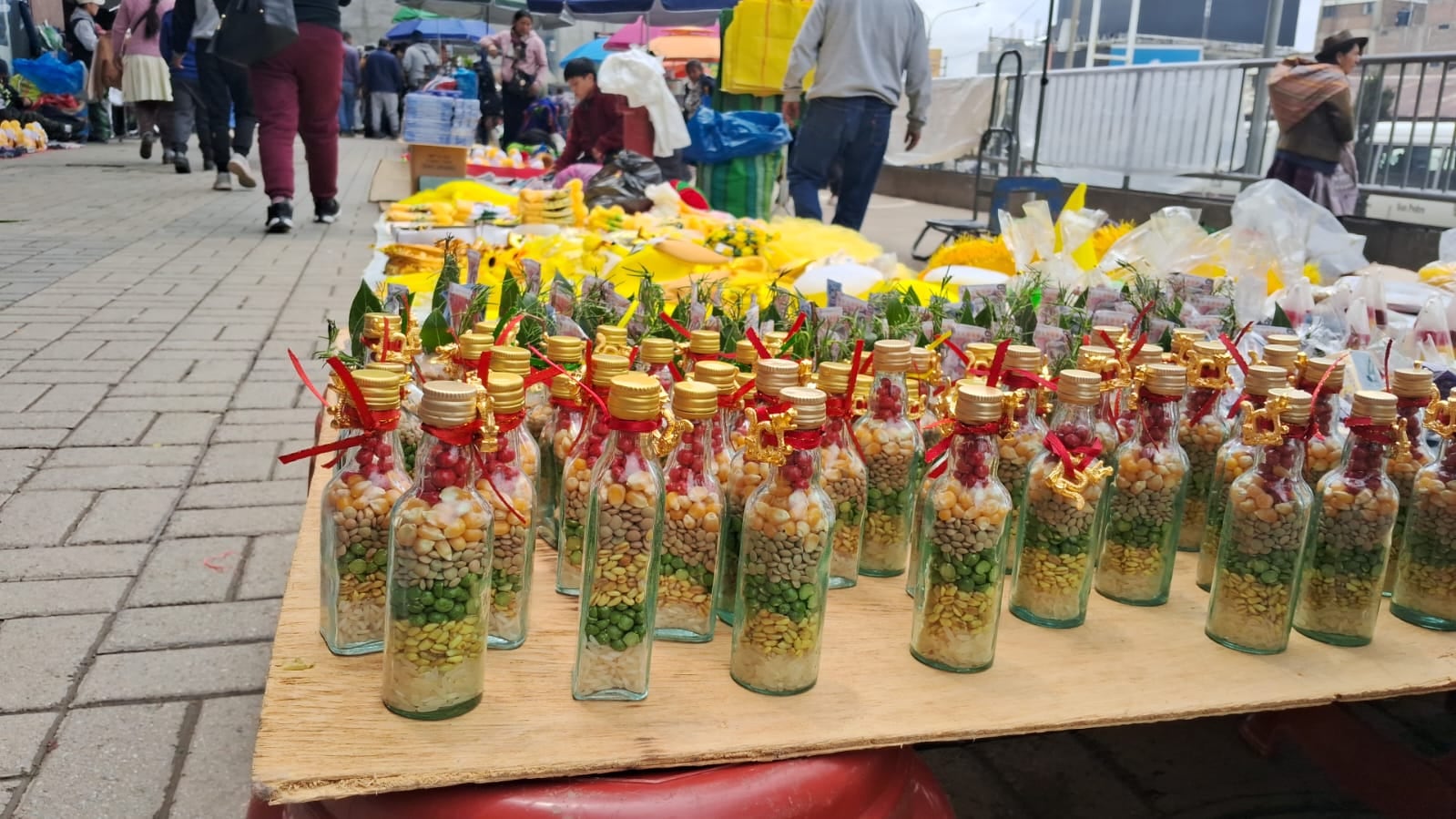 Flores, cábalas, velas, prendas de vestir, palo santos, sahumerios y hasta los patitos kawai. Comerciantes de Huancayo han inundado las inmediaciones del mercado Modelo y Raez Patiño con las ventas de artículos para celebrar el Año Nuevo y señalan que se quedarán hasta las 11:00 de la noche.