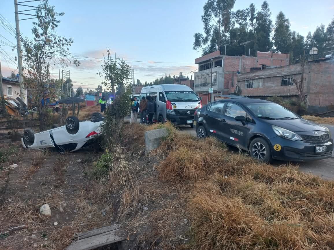 Un automóvil de placa W3O-47 terminó con las llantas hacia arriba tras despistarse esta mañana en el kilómetro 106 de la Carretera Central, tramo Concepción - Matahuasi. El accidente ocurrió alrededor de las 5:45 a.m. cuando el conductor, Jair Maturano (22), intentó esquivar a un perro que se cruzó en la vía, perdiendo el control de la unidad.