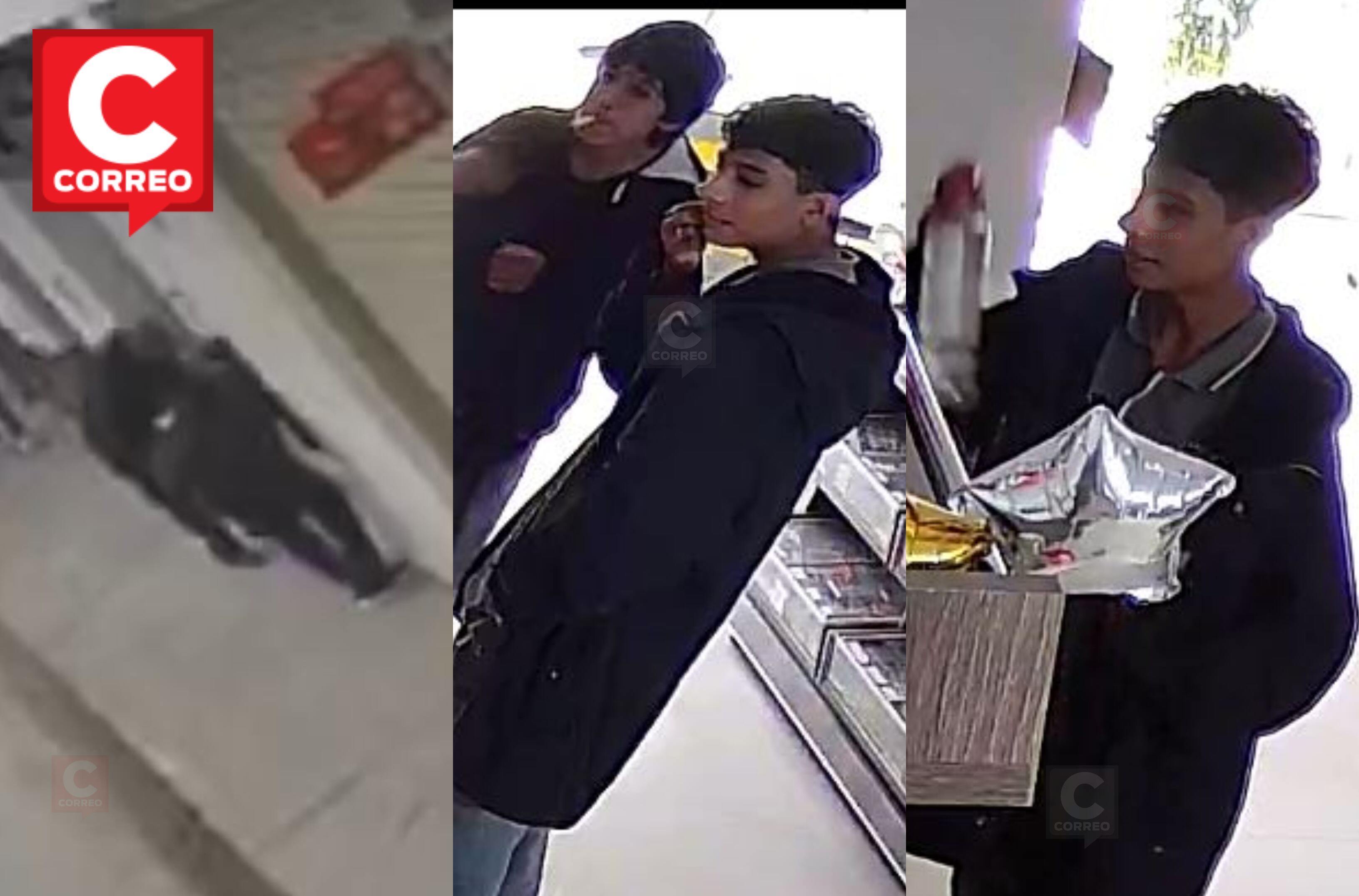 Todo fue captado por una cámara de seguridad. Otros dos jóvenes entraron la tienda “Super Nova” de la Av. Callmel del Solar N° 965. A las 11:30 horas, uno de los pillos distrae al vendedor para hurtar un ron cartavio, luego regresan para sustraer más botellas de whisky y tequila.