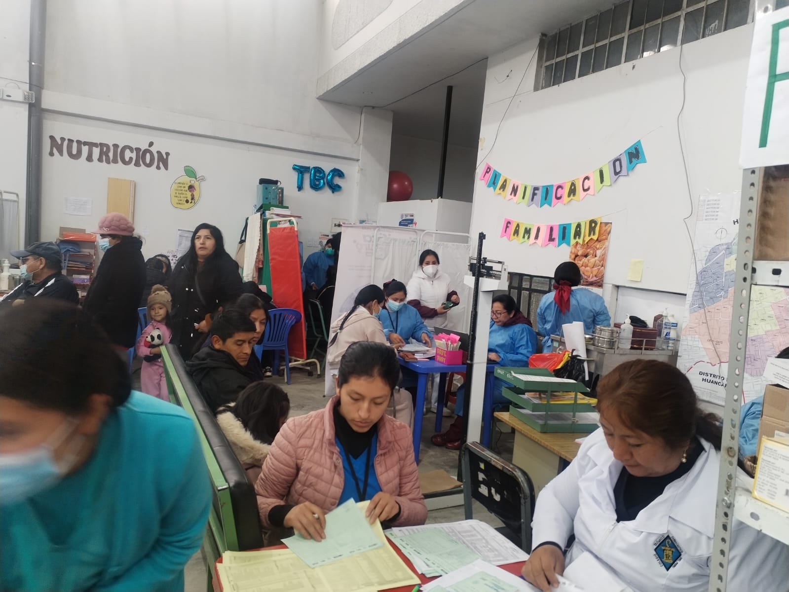 Tal es así que los servicios de nutrición, TBC y planificación familiar funcionan en una sala común en un local de la intersección de las avenidas Arterial y Huancavelica, donde lo único que los separa son bimbos y sillones.