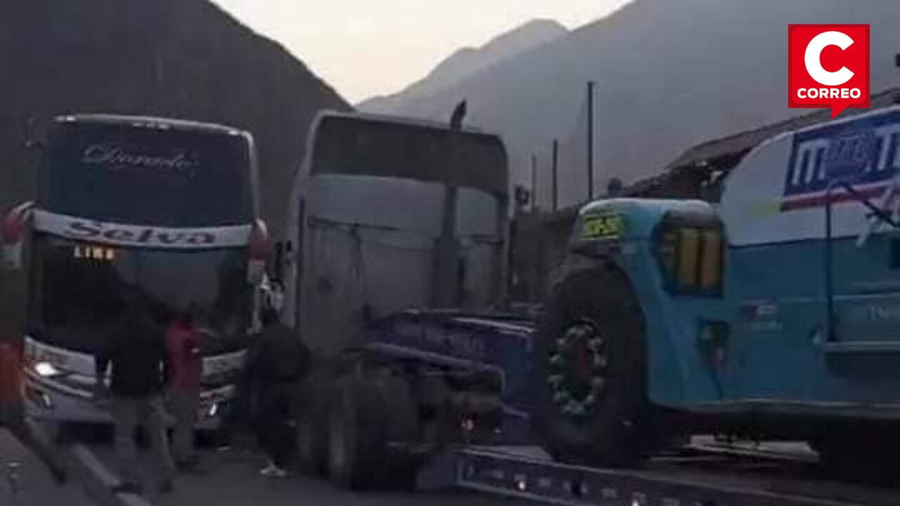Al promediar las 7:00 de la mañana un bus interprovincial y tráiler chocaron frontalmente en la Carretera Central sector de Oscolla – Cocachacra, debido a la magnitud de ambos vehículos el tránsito quedó restringido.
