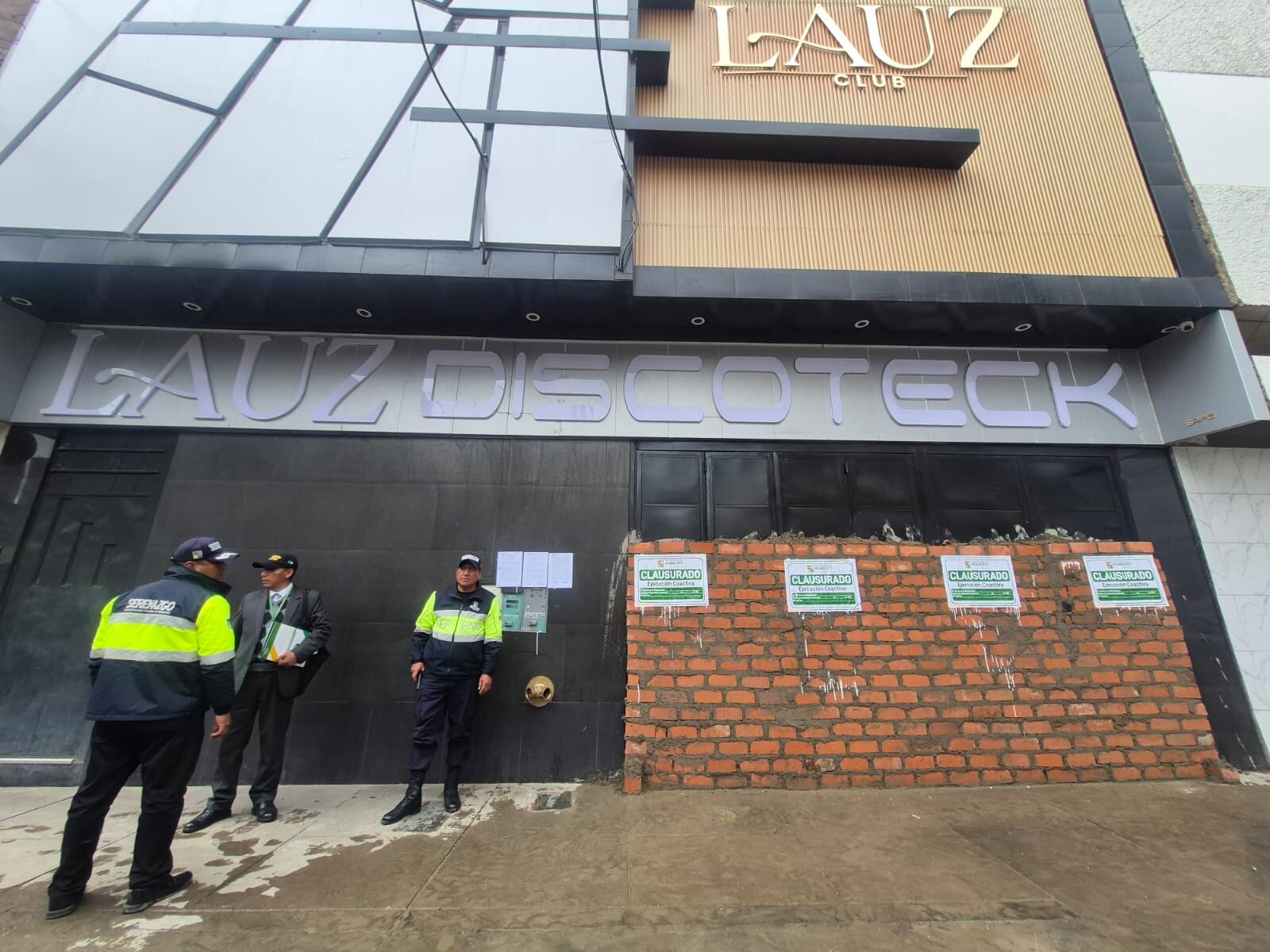 La discoteca “Lauz”, ubicada en el jirón Lima N.° 820, esquina con la avenida Huancavelica, fue clausurada y sus accesos cerrados con ladrillos y cemento tras detectarse que operaba sin certificado de Inspección Técnica de Seguridad en Edificaciones (ITSE) ni licencia de funcionamiento.