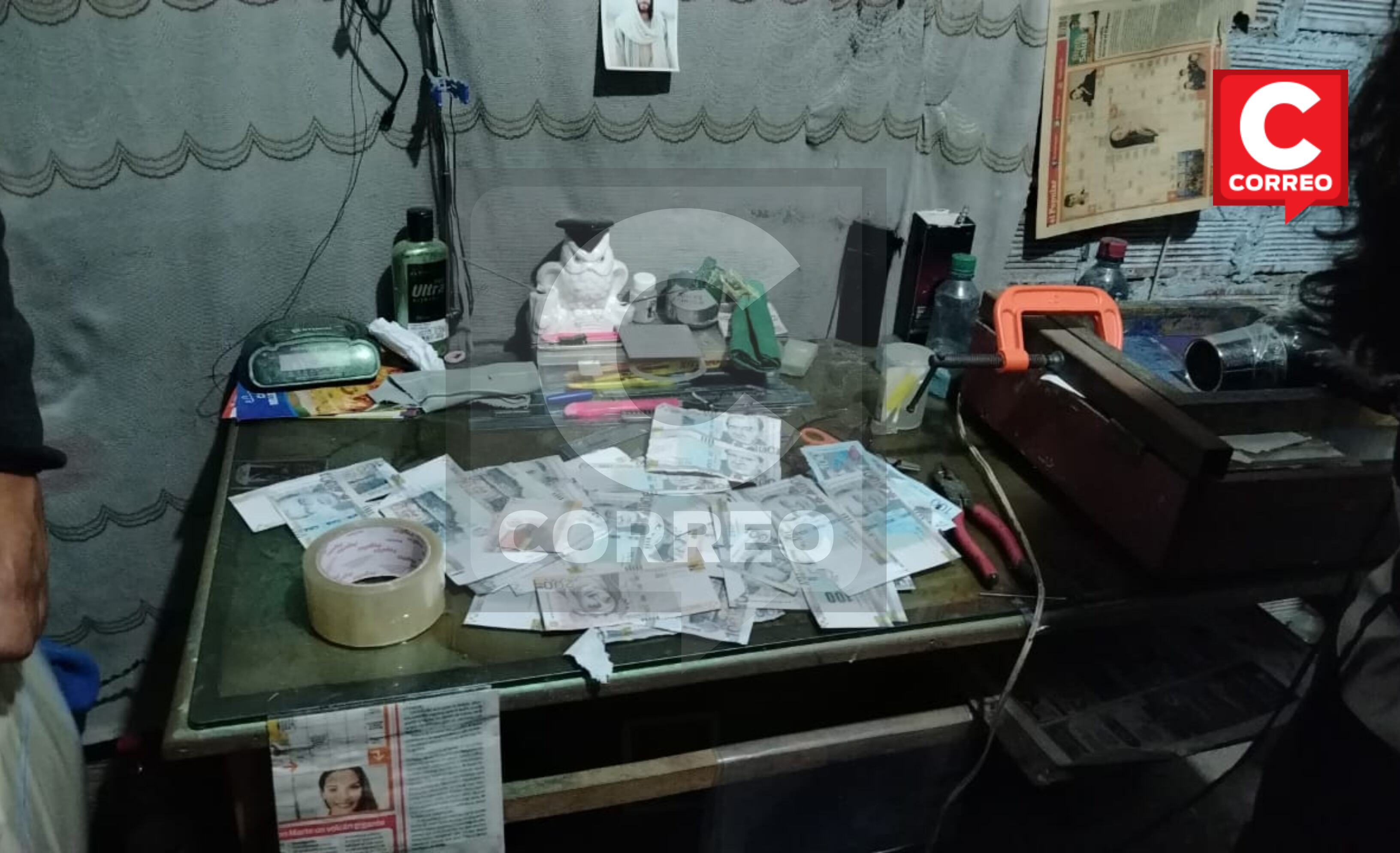 En Huancayo, a las 2 de la madrugada, policías violentaron la casa del Jr. La Merced N° 290 en el distrito de Chupuro, donde detuvieron a Juan Carlos Ríos Cóndor (54), quien alquiló una casa en la calle Tomás Bravo en Jauja para fabricar billetes falsos de 50 soles.