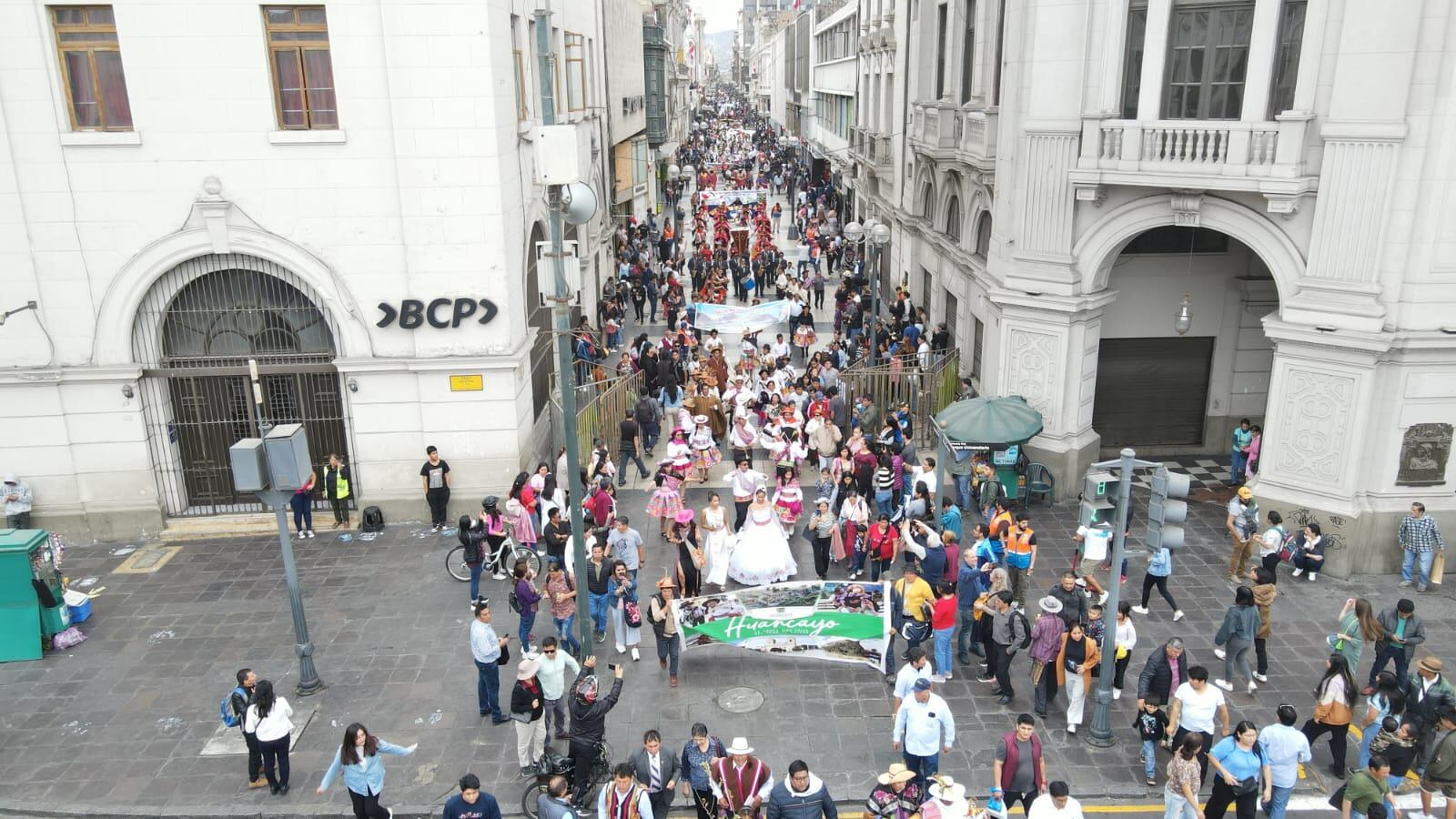 Con la alegría de sus danzantes de sierra y la selva, ayer una comparsa de la delegación de la región Junín, tomó las calles del centro histórico de Lima para promocionar a las 9 provincias como el destino ideal para visitar en Fiestas Patrias.