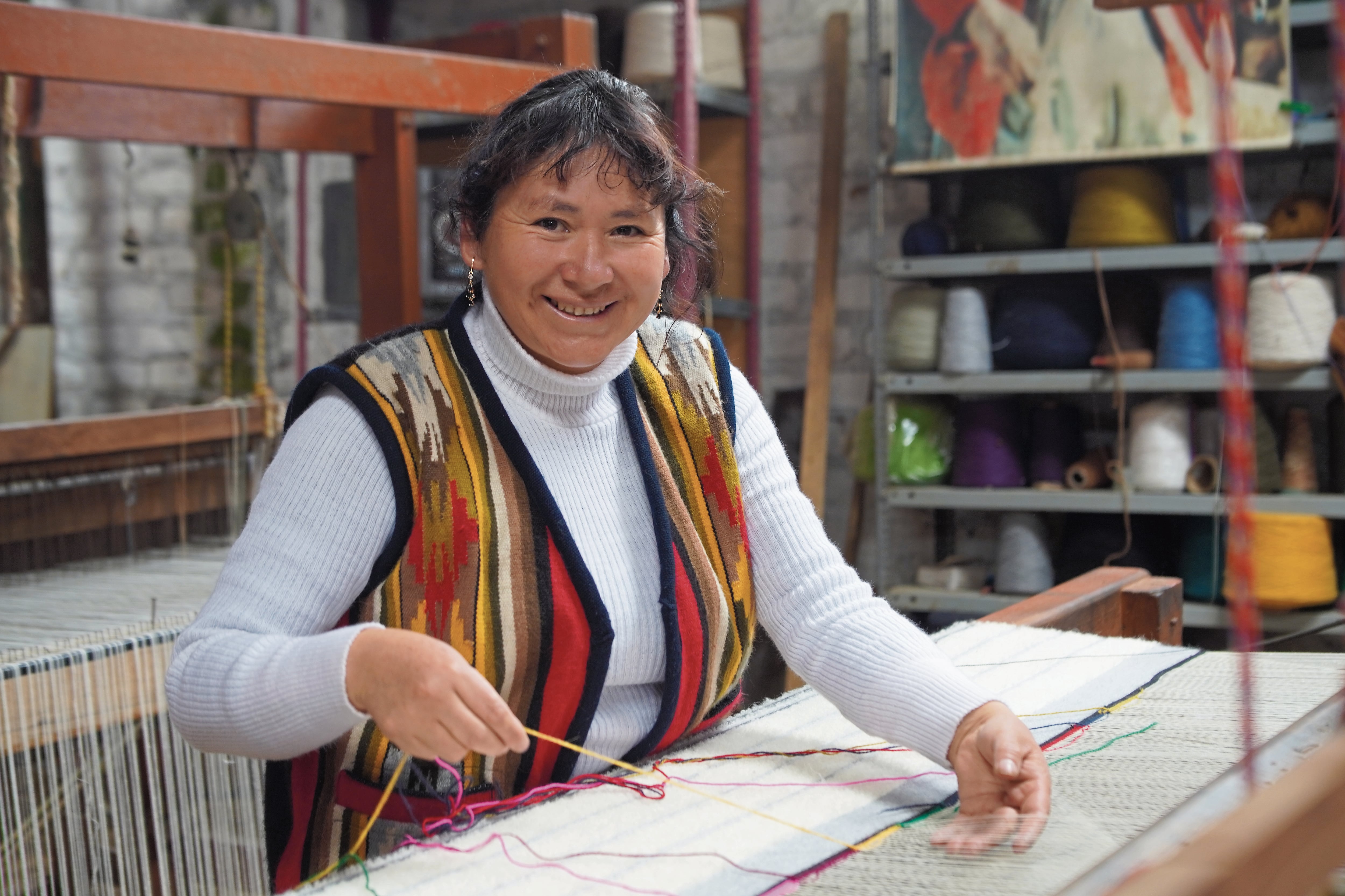 Gabriela Maldonado Lazo, hija del reconocido y recordado artesano Faustino Maldonado, fue la encargada de elaborar el tapiz de lana en telar. Nunca supo que su obra sería para el sumo pontífice; aun así, imprimió en su arte una representación muy bien lograda del valle del Mantaro.