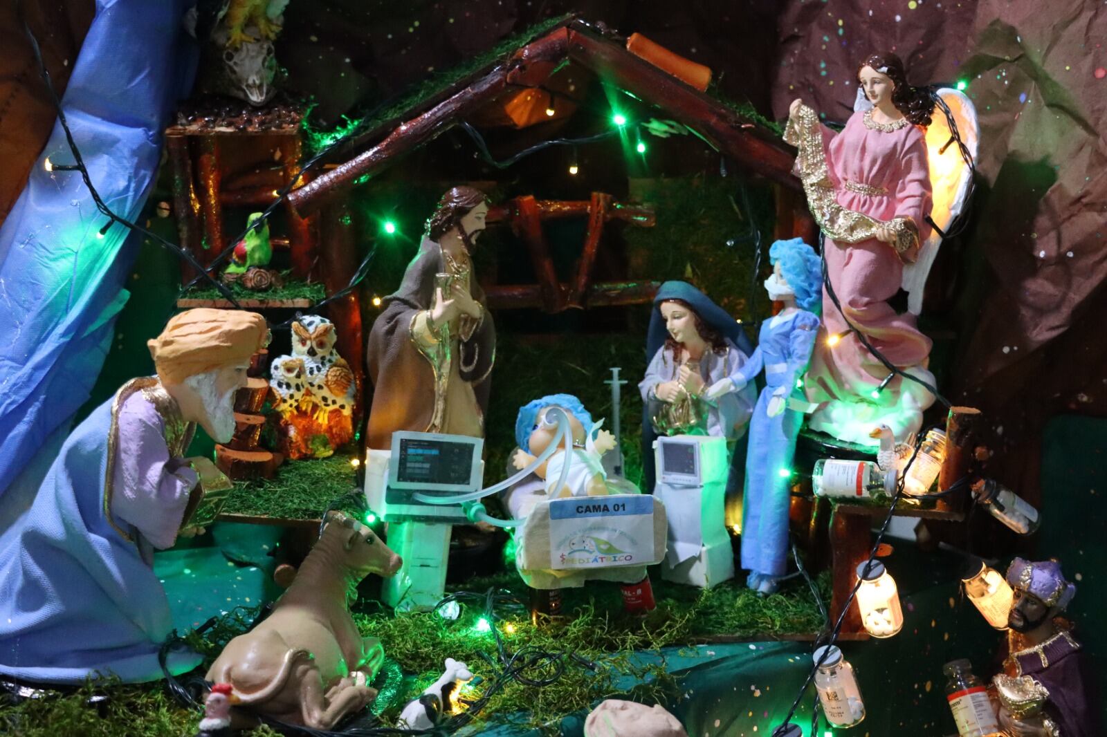 El espíritu navideño se apoderó de los trabajadores del hospital el Carmen, los pacientes y sus familiares que disfrutaron de una exhibición de nacimientos temáticos, para lo cual usaron materiales reciclados.