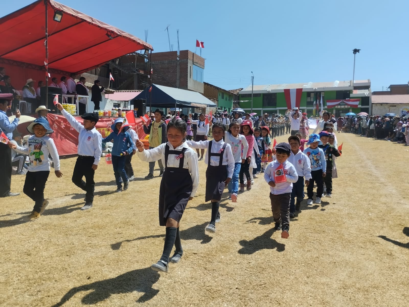 Los más pequeños, eran los más emocionados en desfilar a paso gallardo, algunos luciendo el uniforme de color plomo, agitaban con la mano una bandera peruana. Otros llevaban sus escarapelas en el pecho.