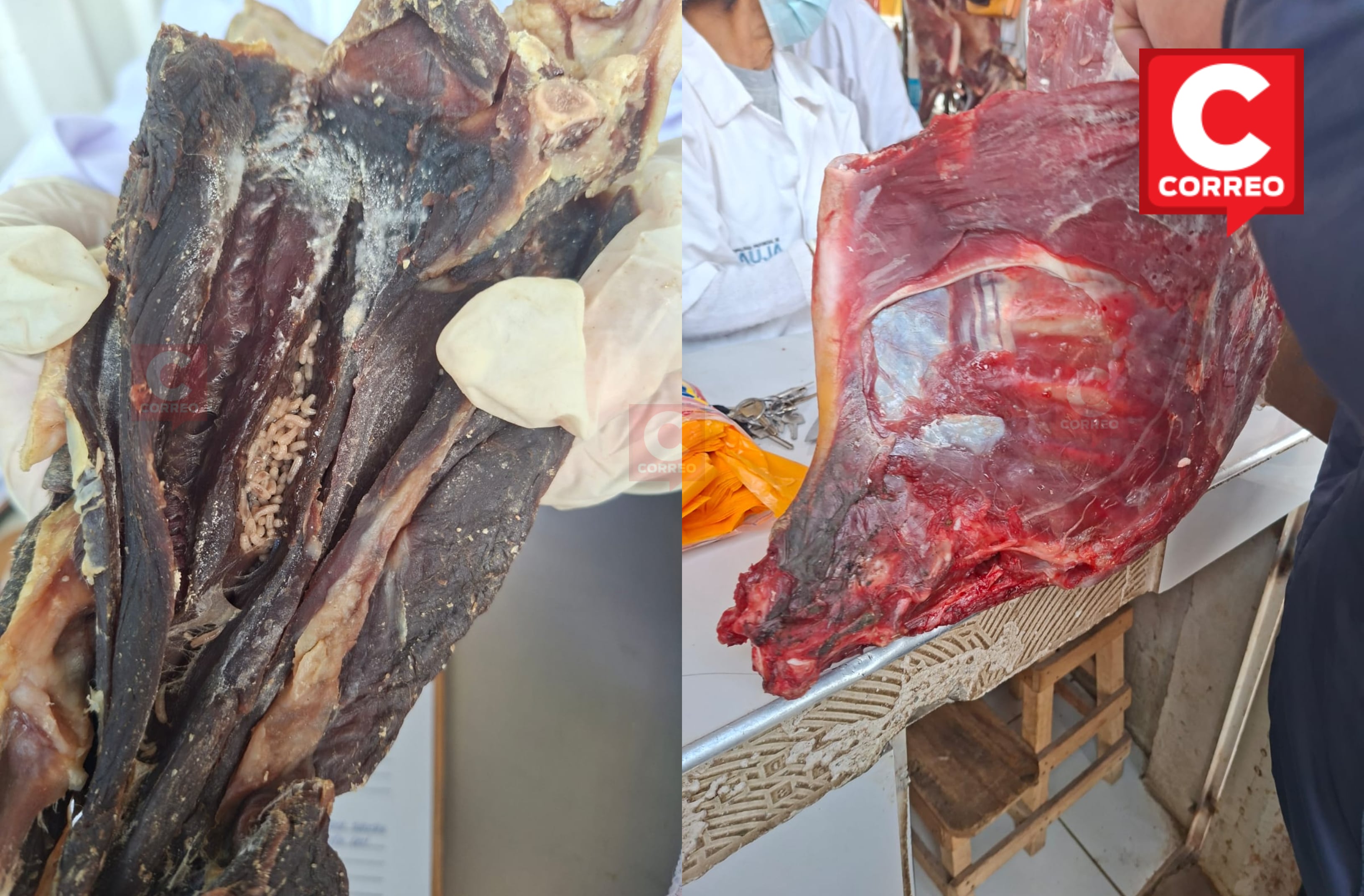 Durante la inspección a los diferentes puestos del principal centro de abastos de la ciudad de Jauja, los fiscalizadores detectaron que 6 de 26 comerciantes del pabellón “A” conservaban carne descompuesta y con presencia de larvas en el refrigerador junto a la carne fresca que se ofrecía a los clientes.