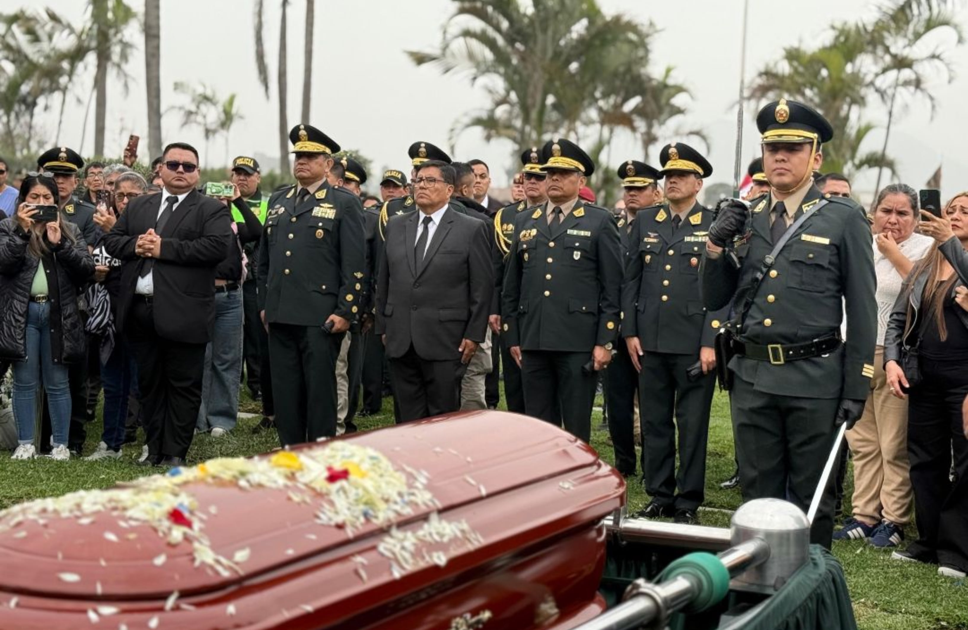 Los restos del suboficial PNP José Gabriel Munive Gurmendi fueron enterrados hoy en el cementerio de Santa Rosa de Chorrillos, a la ceremonia asistió el ministro Carlos Malaver junto con el comandante general de la PNP, Víctor Zanabria. Munive Gurmendi fue asesinado por delincuentes que lo balearon en el distrito de la victoria en Lima, cuando el agente junto a su compañero Harry Alison del Carpio Valdez, frustraron un asalto a un camión cargado con abarrotes.