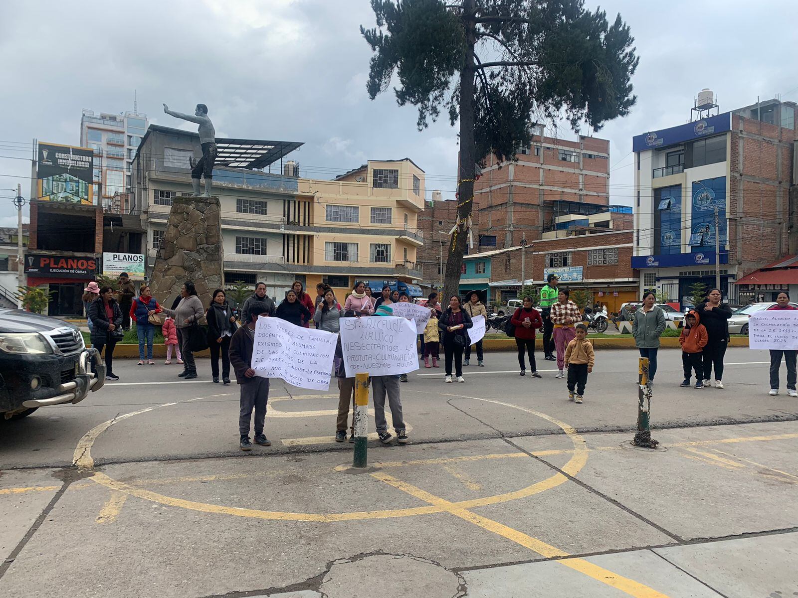 Agregó que, a la obra, apenas van dos obreros para hacer ‘presencia’. Es así que, portando sus carteles, la integrante de la Junta Directiva, Lidia Paquiyauri, señaló que en el patio hay material de construcción que pone en riesgo a los alumnos que en semanas volverán a clases.