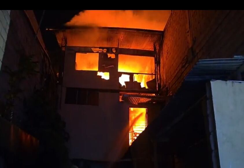 El joven pedía auxilio a gritos, al ver que el cuarto del tercer piso donde dormía su padre, estaba siendo devorado por el fuego, que terminó consumiendo la casa de material noble y madera con techo de calamina.