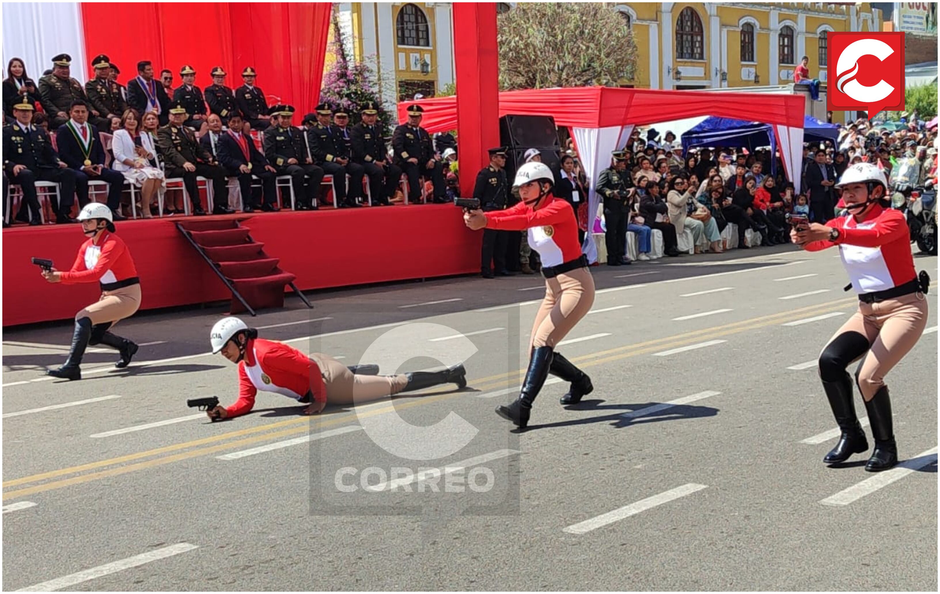 Por parte de la PNP, la Unidad de Tránsito en Huancayo, resaltó con una demostración de marinera en motocicleta, exhibición de maniobras en marcha, además de una singular corrida al ritmo de la banda policial.