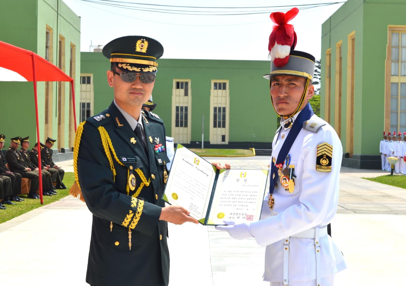 El flamante oficial del Ejército del arma de Infantería, de 24 años, Gerson André Menéndez, fue reconocido por su buen desempeño durante su entrenamiento en una academia militar. Además, recibió una Medalla Académica del Ejército a los cadetes que ocuparon los primeros puestos en sus respectivas armas y servicios, como Menéndez Flores.