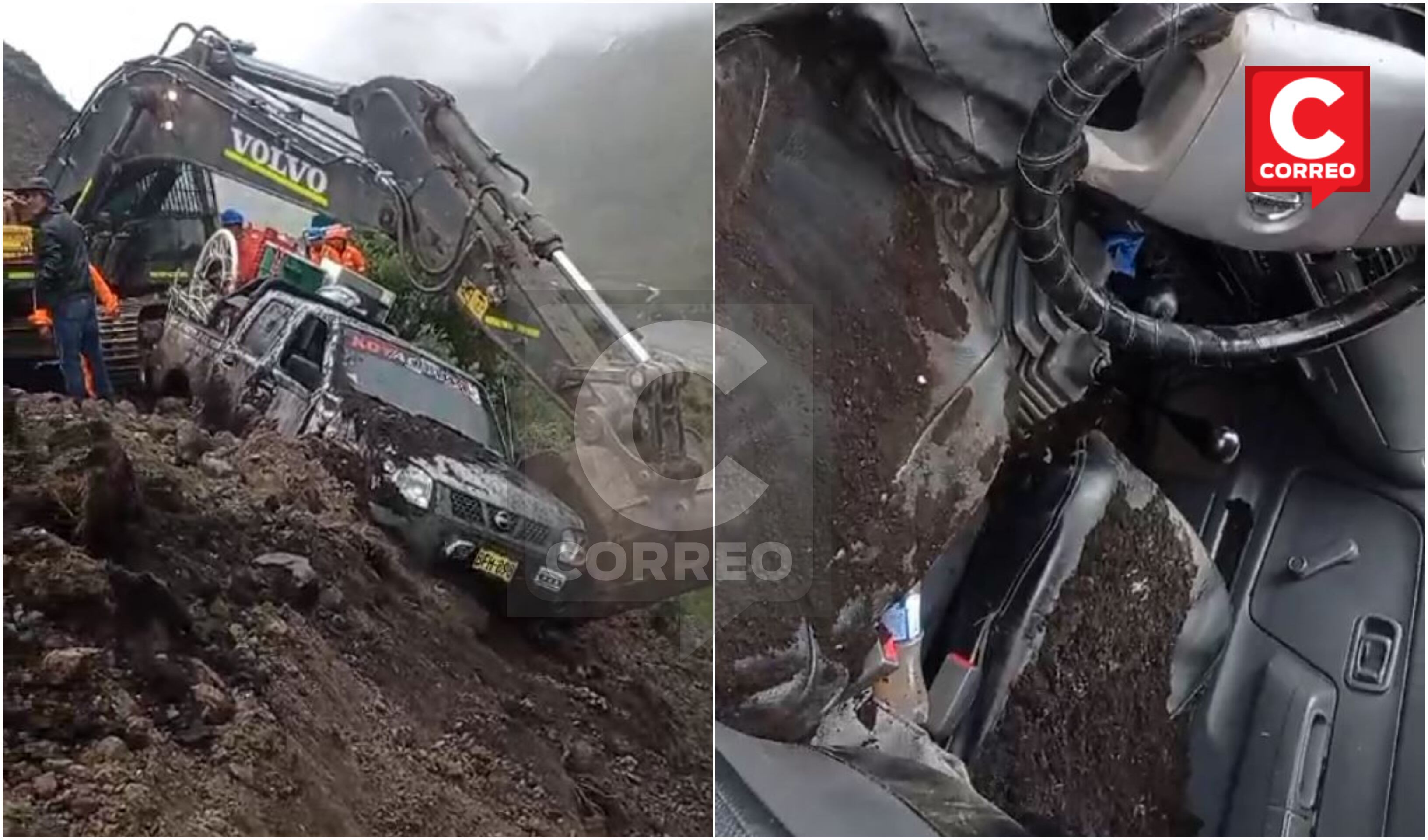 Un deslizamiento de tierra en la ruta Huaytapallana - Pariahuanca en el kilómetro 33 cerca a la zona de Yuraccyacu, estuvo a punto de cobrar la vida de una familia que se trasladaba en una camioneta.