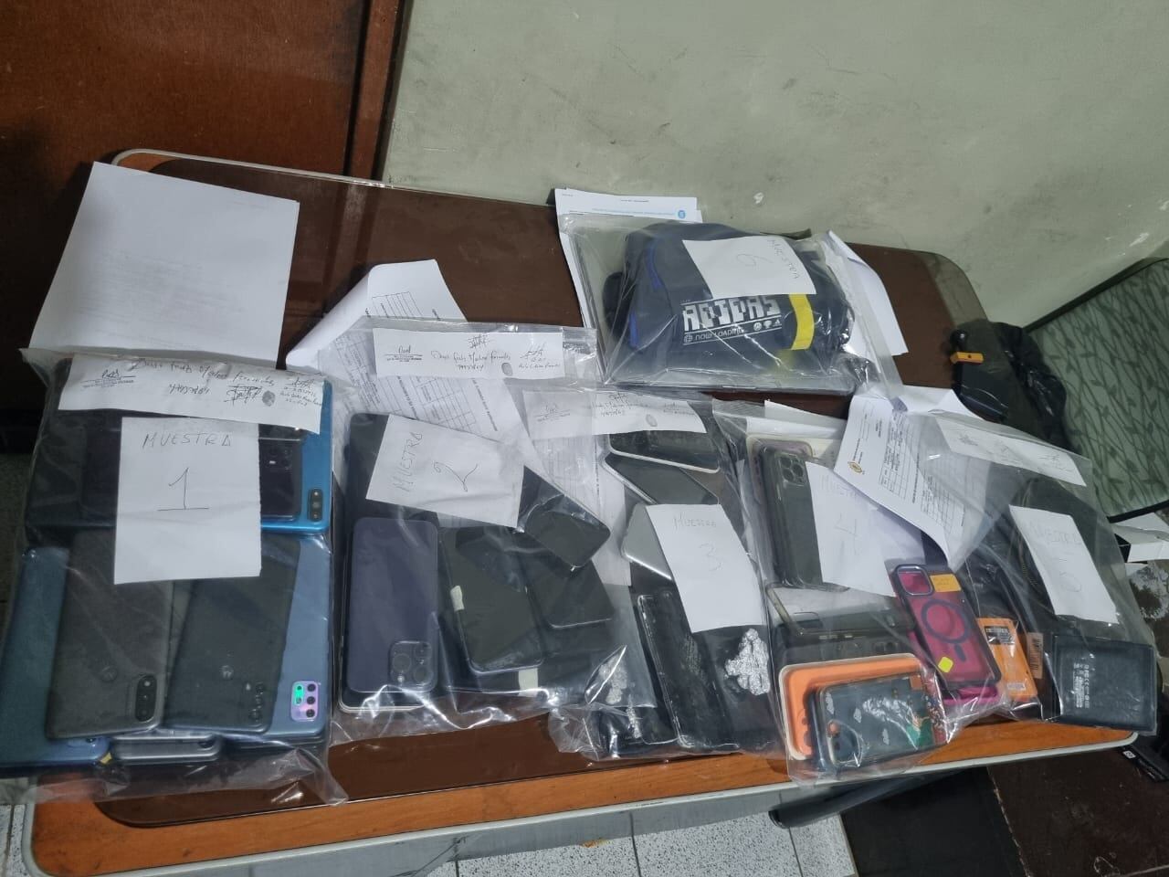 En el interior de la casa se halló 12 celulares reportados como robados, la mayoría Iphone, y uno perdido; además una laptop; una cartera con mil 800 soles; 10 celulares inoperativos; 14 protectores de celulares de diferentes móviles y 52 maquetas de celulares (7 Samsung, 3 ZTE, 7 Redmi, 14 Samsung Galaxy y 20 Motorola). “Se encontraron 12 celulares reportados como robados; al parecer las personas detenidas por presunto delito de recepción, tienen predilección por las marcas Iphone”. Todo lo que está cautado está valorizado en 70 mil soles”, refirió el general PNP Colin Sim Galván, jefe de la VI Macro Región.