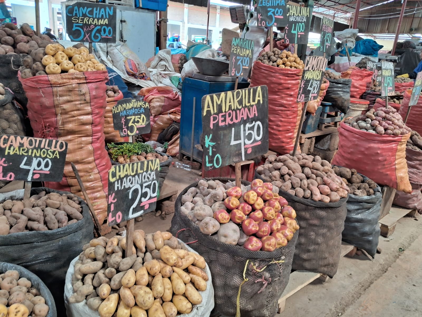 “Todas las variedades de papas han subido, la papa blanca (yungay, mariva, canchán el kilo a las amas de casa está a 1.70 a 1.80 soles mientras que el precio al por mayor está a 1.40 soles, mientras que la papa nativa amarilla peruana, huayro, huamantanga está a 4 soles al por mayor y 4.50 soles vendemos al por menor”, detalló el delegado de la sección papas del mercado exMaltería, César de la Cruz Ramos.