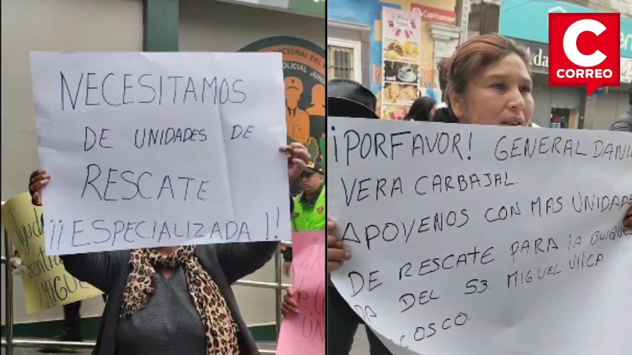 Frente a la sede de la Región Policial Junín, la familia del suboficial de tercera Miguel Vilca Ccosco (24) realizó una protesta con pancartas para exigir al general Danilo Vera Carbajal mayor apoyo y el envío de personal especializado en rescate acuático que continúe la búsqueda del joven, desaparecido en las aguas del río Mantaro tras un accidente de tránsito ocurrido el pasado viernes.