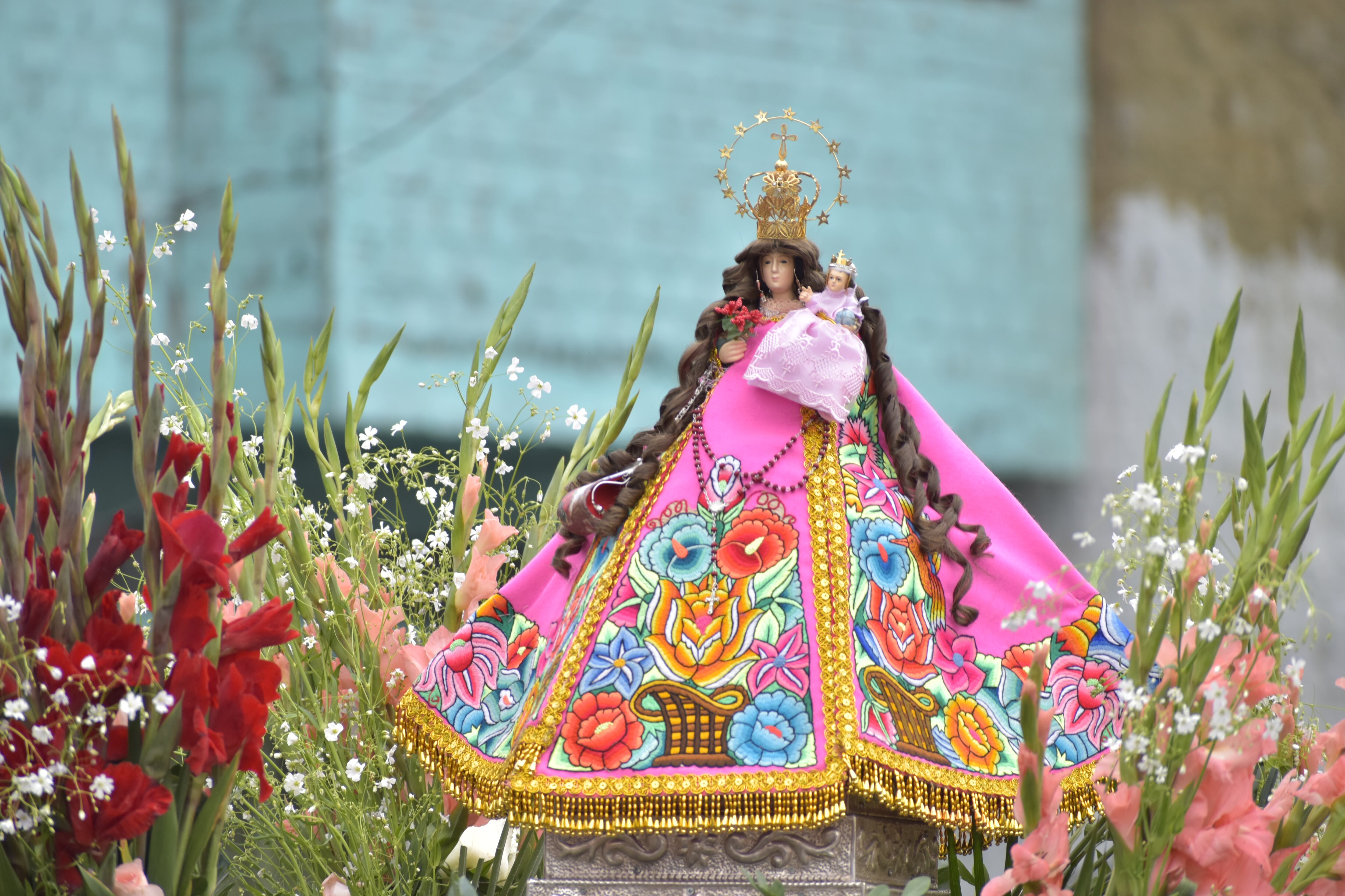 A cada paso, los fieles devotos elevaron altares y extendieron alfombras para la virgen. En su mayoría eran escolares de las escuelas y colegios a lo largo de la calle Real, que cantaban con los carachaquis, los niños que alegraron a la virgen en su aparición en el poblado de Cocharcas.