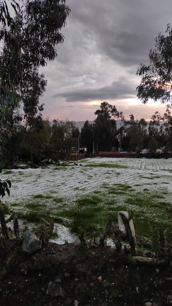 El alcalde de Sapallanga, Miguel Paitán Soto manifestó que unas 15 hectáreas de cultivos de papa, maíz, arveja, haba, entre otros, terminaron bajo el hielo, tras la granizada empezó a las 4 de la tarde y duró una hora en promedio.