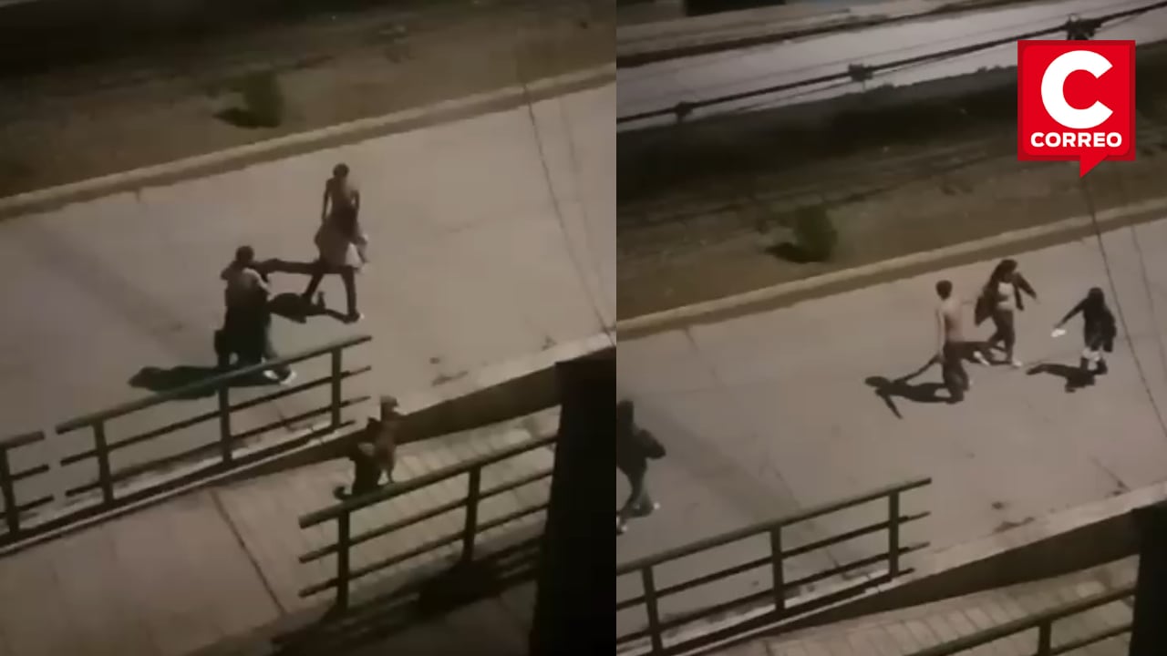 Las imágenes captadas por moradores muestran cómo ambos sujetos, con el torso desnudo, se atacan violentamente mientras sus enamoradas intentan separarlos sin lograrlo, en medio de gritos, ladridos de perros y el caos generado en la zona.